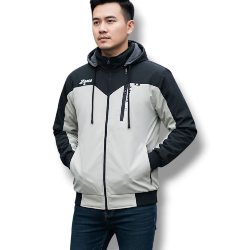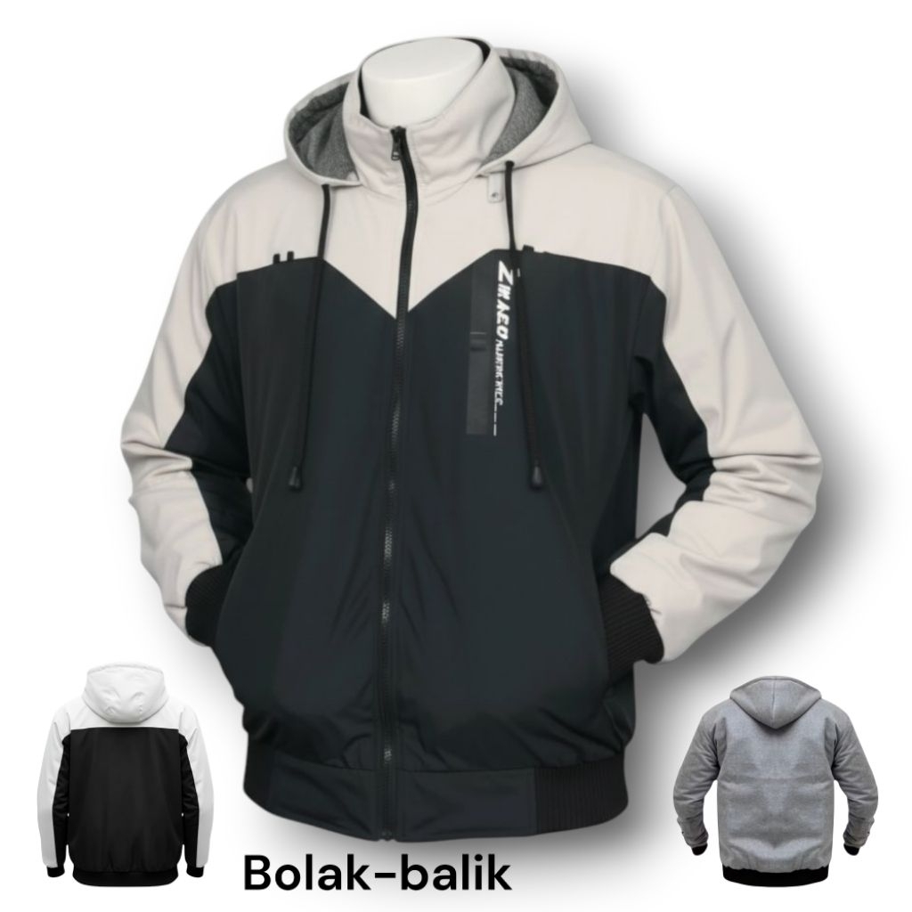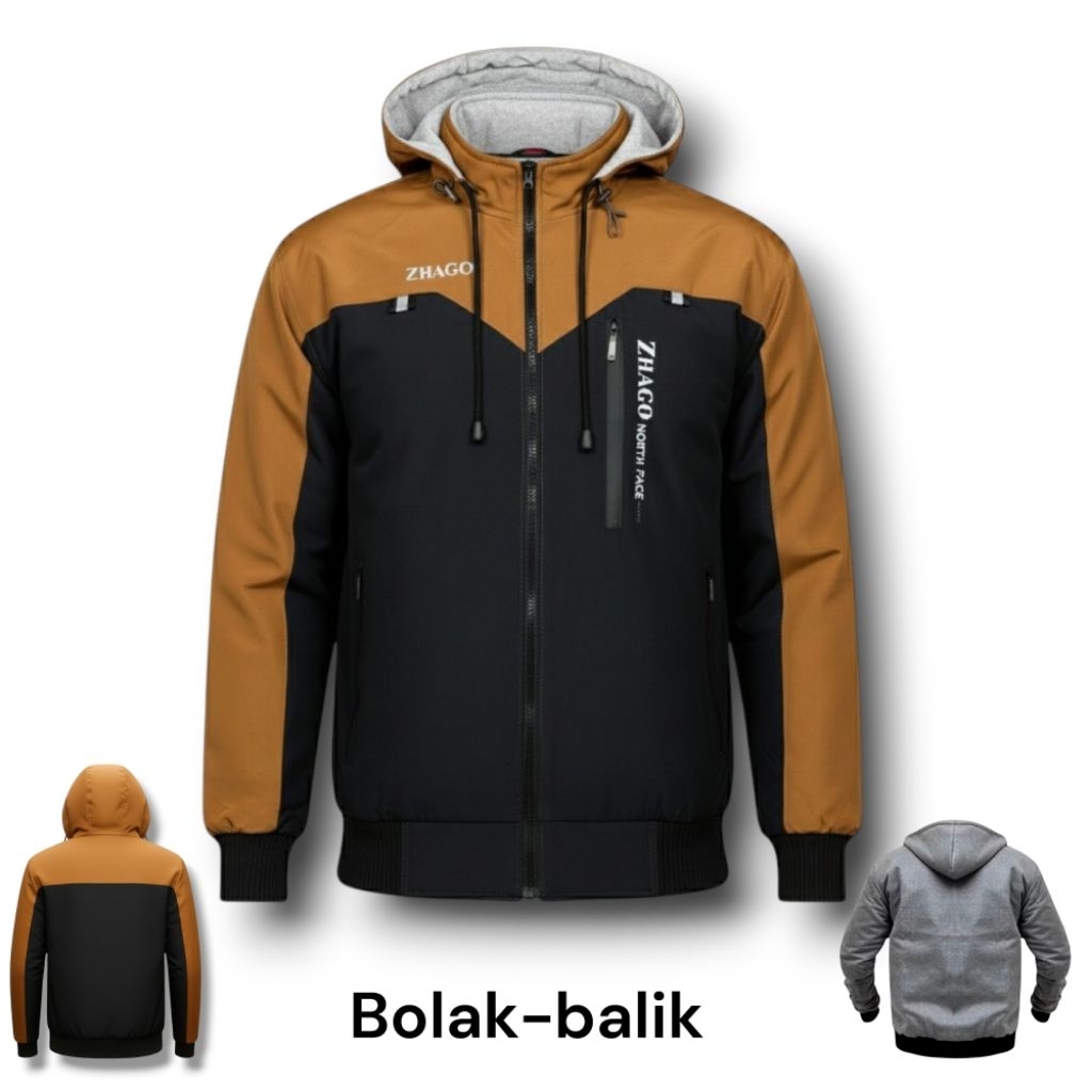 Jacket Parasut Bolak Balik Terbaru ZHAGO Premium Waterproof Hoodie Copot Pasang