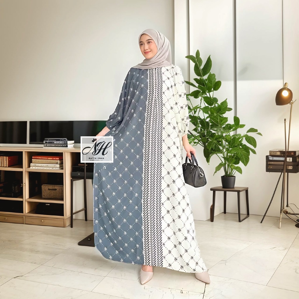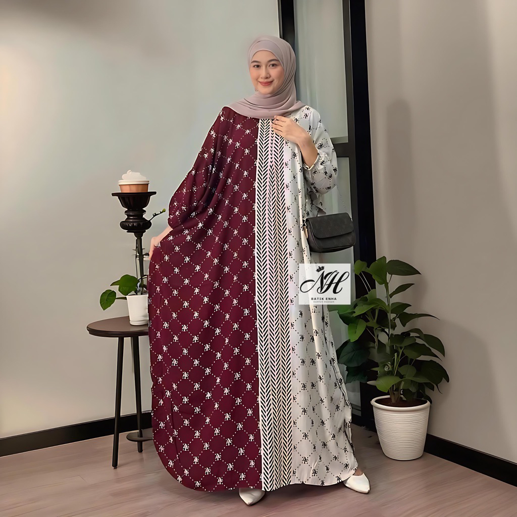 Gamis Wanita Kaftan Motif Aisyah Bahan Rayon Premium Resleting Depan Busui Gamis Adem Tebal