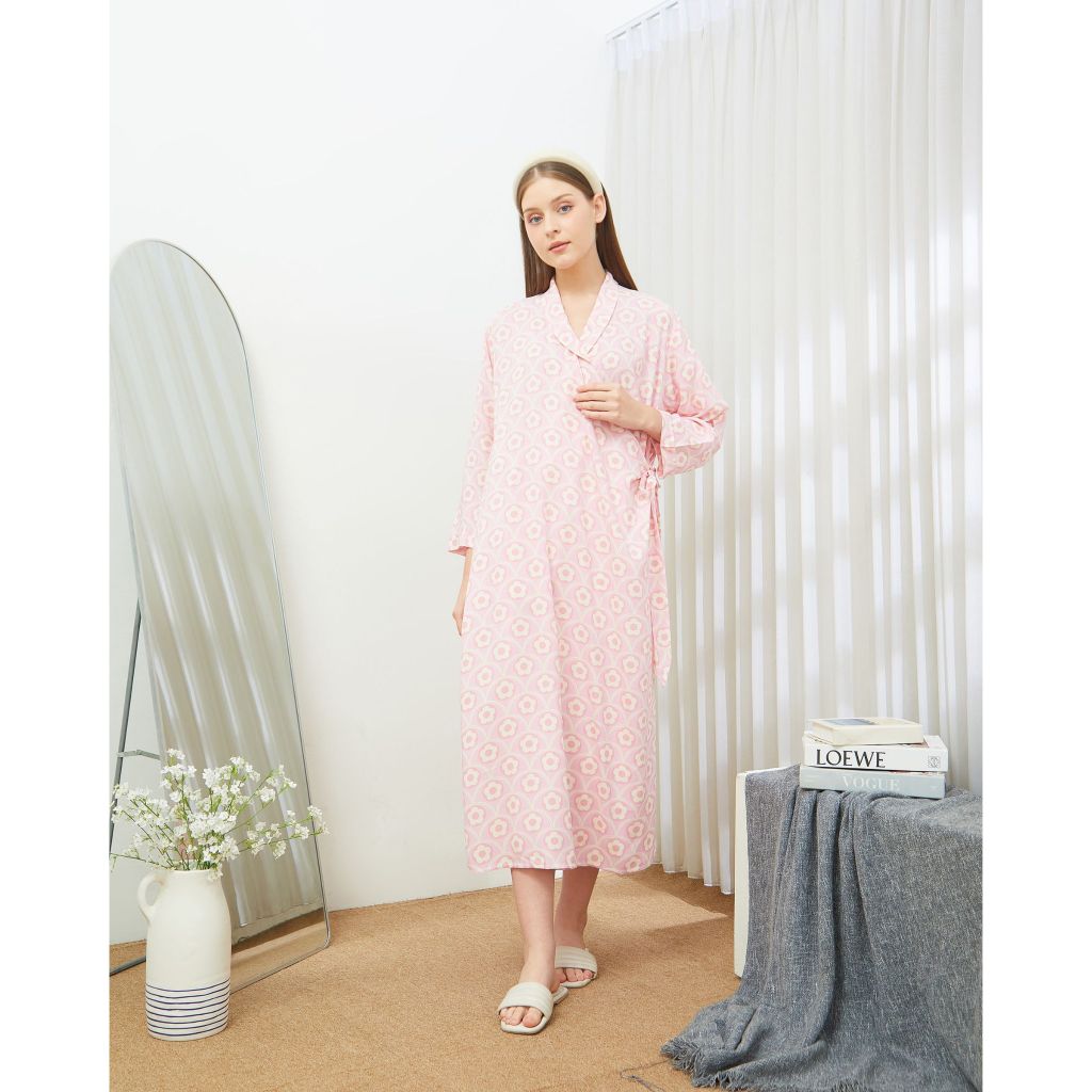 DYD LABEL Naura Kimono Midi Daster Busui & Lahiran Friendly Bahan Rayon Size Jumbo Dress Ibu Hamil Lengan Panjang Fit to