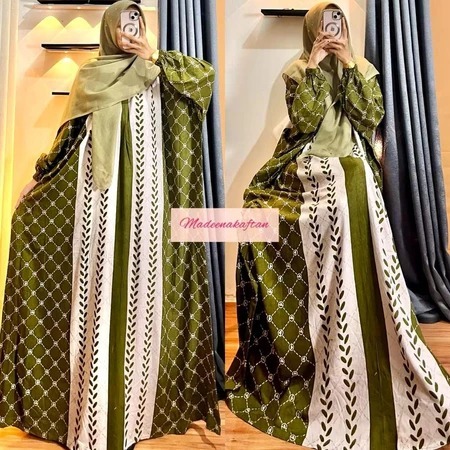 MADINA SERIES-KAFTAN ELEGAN MOTIF MADINA RESLETING DEPAN LENGAN KARET BAHAN RAYON EXCLUSIVE