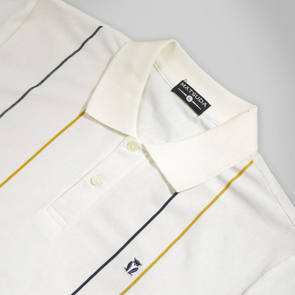 Matsuda Baju Kaos Polo Shirt Dewasa Stripe Pria Kerah Katun Tarumizu Offwhite