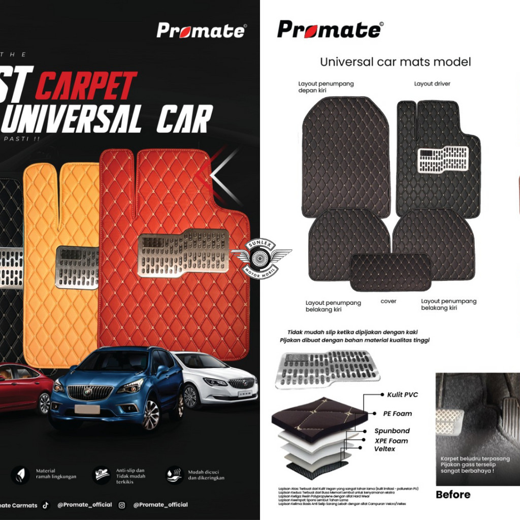 UNIVERSAL FULLSET 2 BARIS DEPAN TENGAH Aksesoris Interior Karpet Mobil 5D Universal 5 Pcs Promate