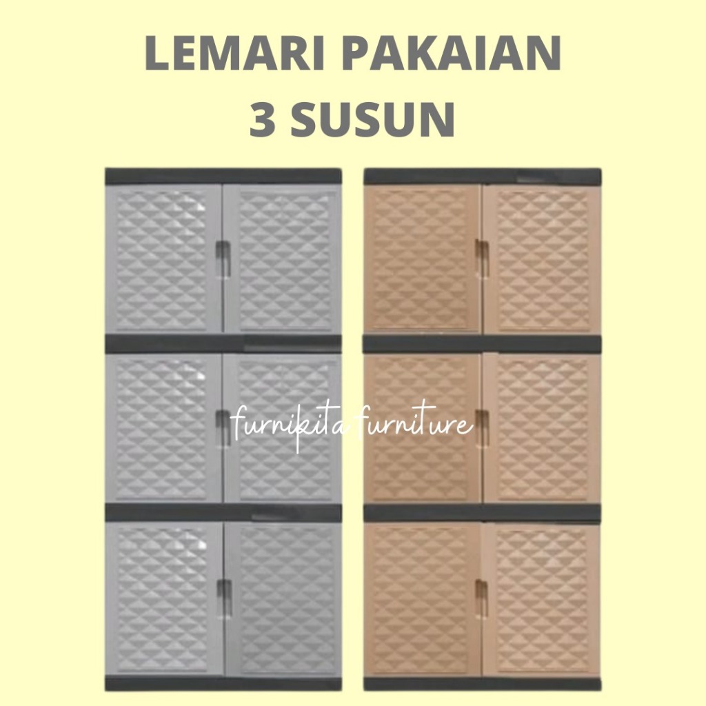 LEMARI PAKAIAN Plastik Tabitha Susun 3 Kaca KUNCI