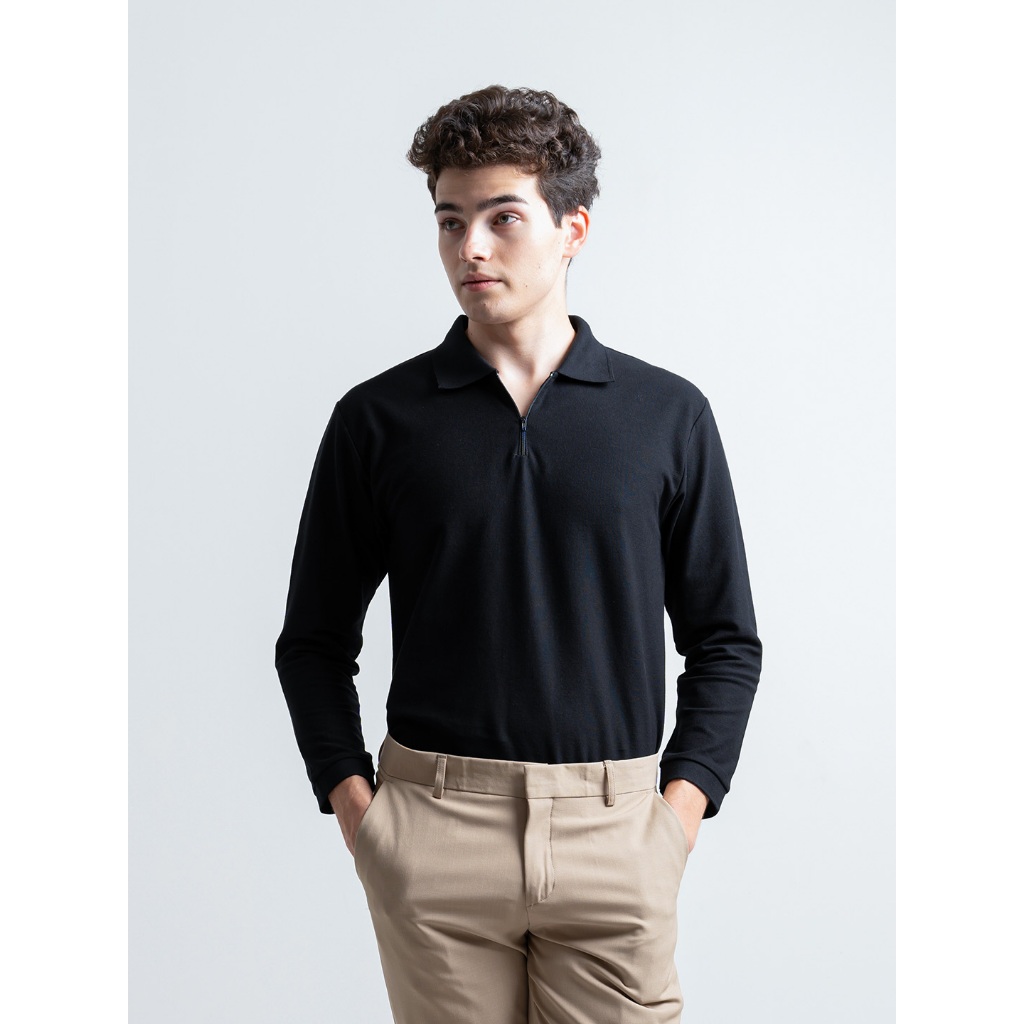 Hsrm - Pozi Polo Shirt Zipper Long Sleeve Toffe | Kaos Polo Pria Lengan Panjang