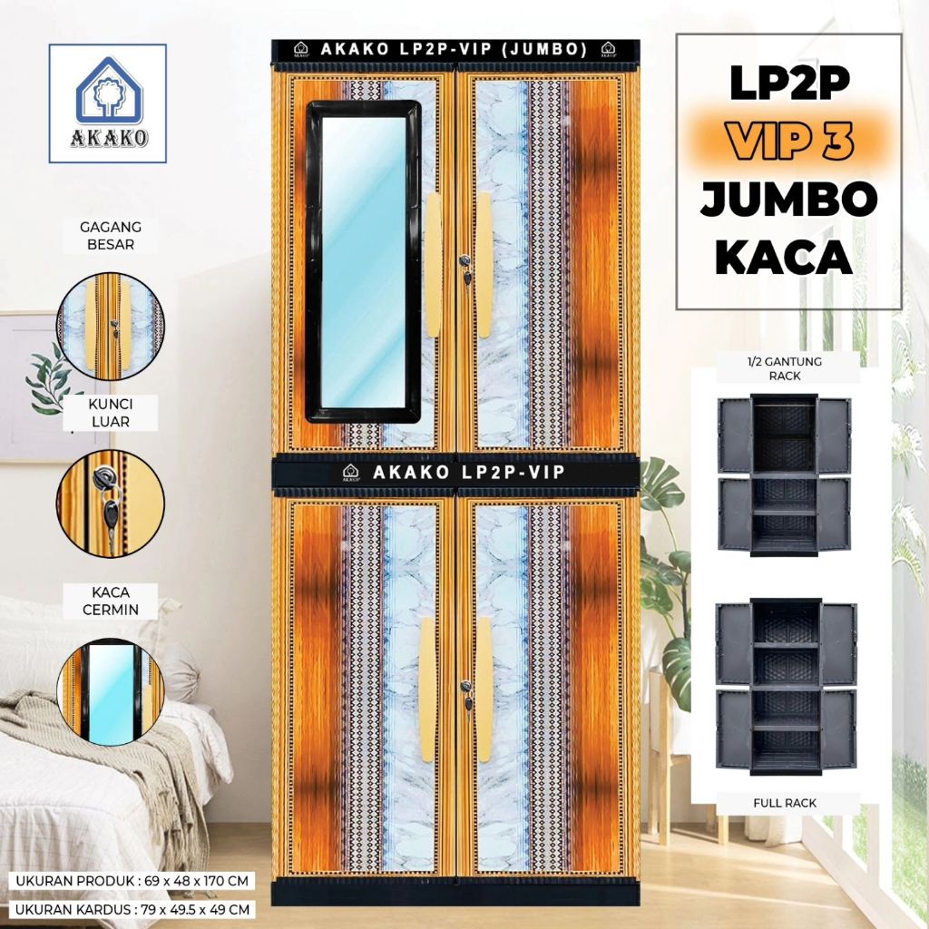 AKAKO Lemari Pakaian Plastik Baju JUMBO BESAR Mirip NAIBA MURAH LP2p VIP KACA CERMIN FULL KUNCI