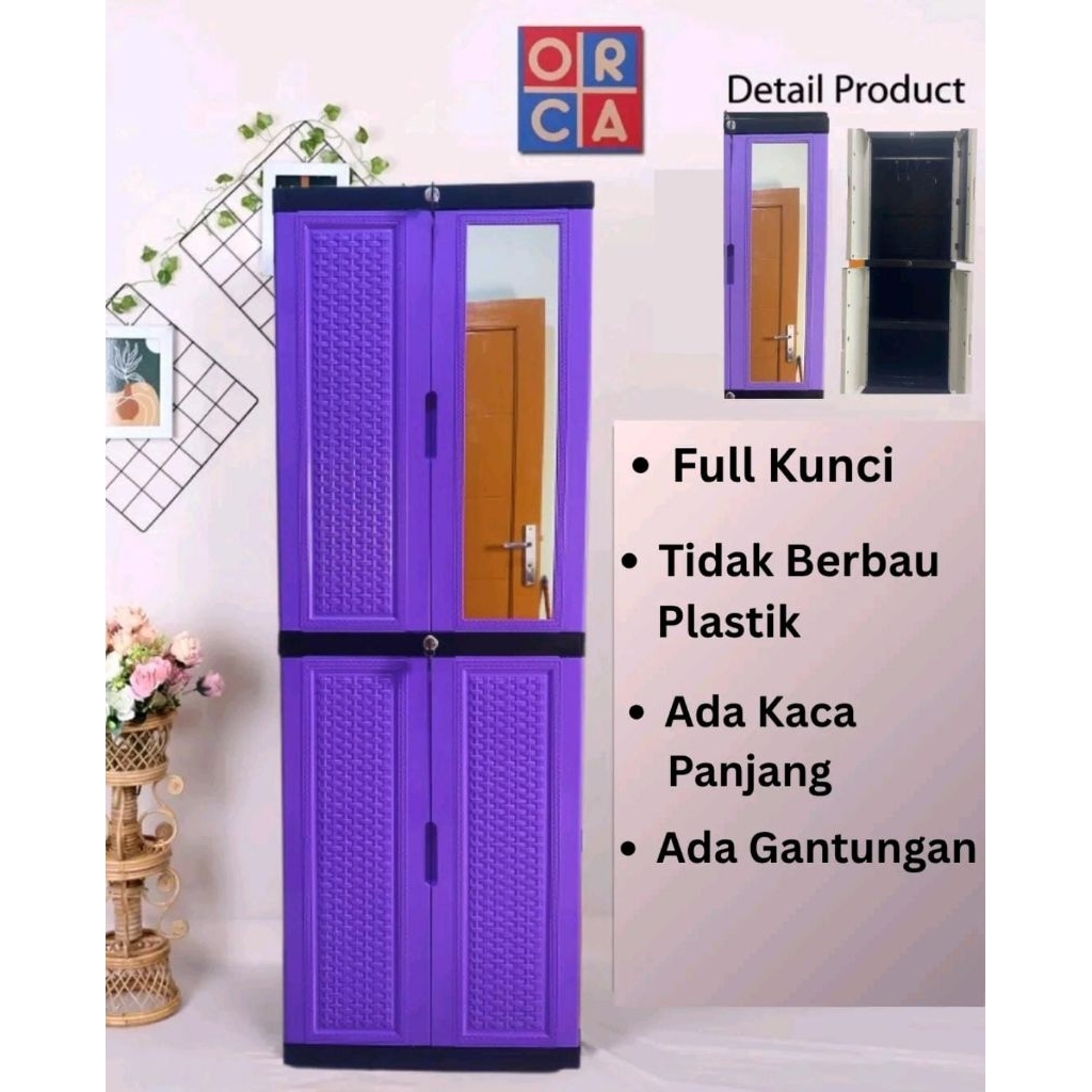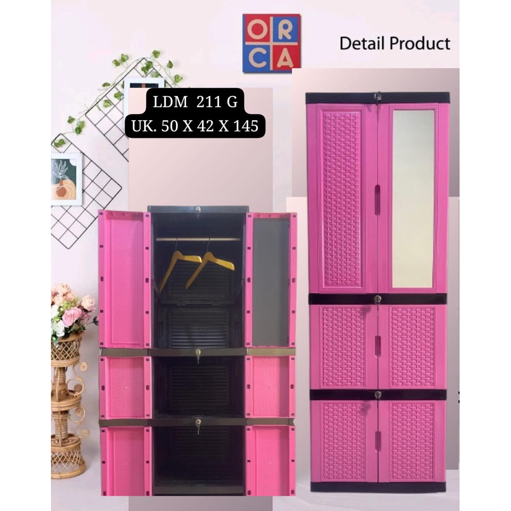 Lemari Plastik Recoment pakai jne cargo atau jnt caro ORCA 6 pintu, 3 Tingkat dengan rak gantungan bagian atas