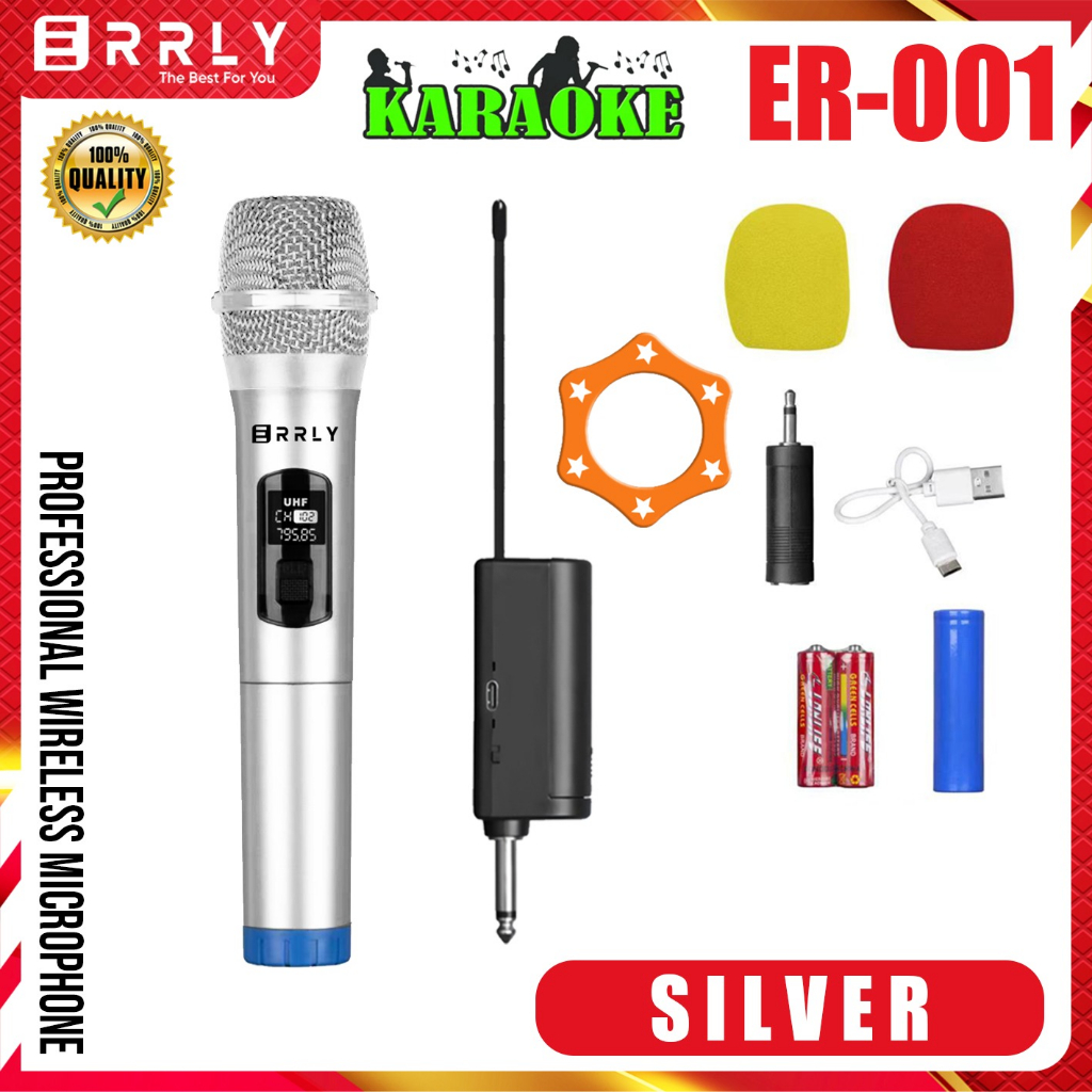 Mic Karaoke Microphone Wireless Tanpa Kabel MIC2 MIC1 ERRLY ER001 Single ER002 Dual Digital LED Mic Karaoke GENGGAM