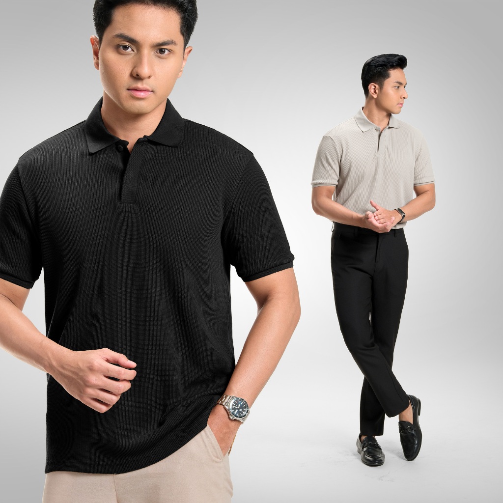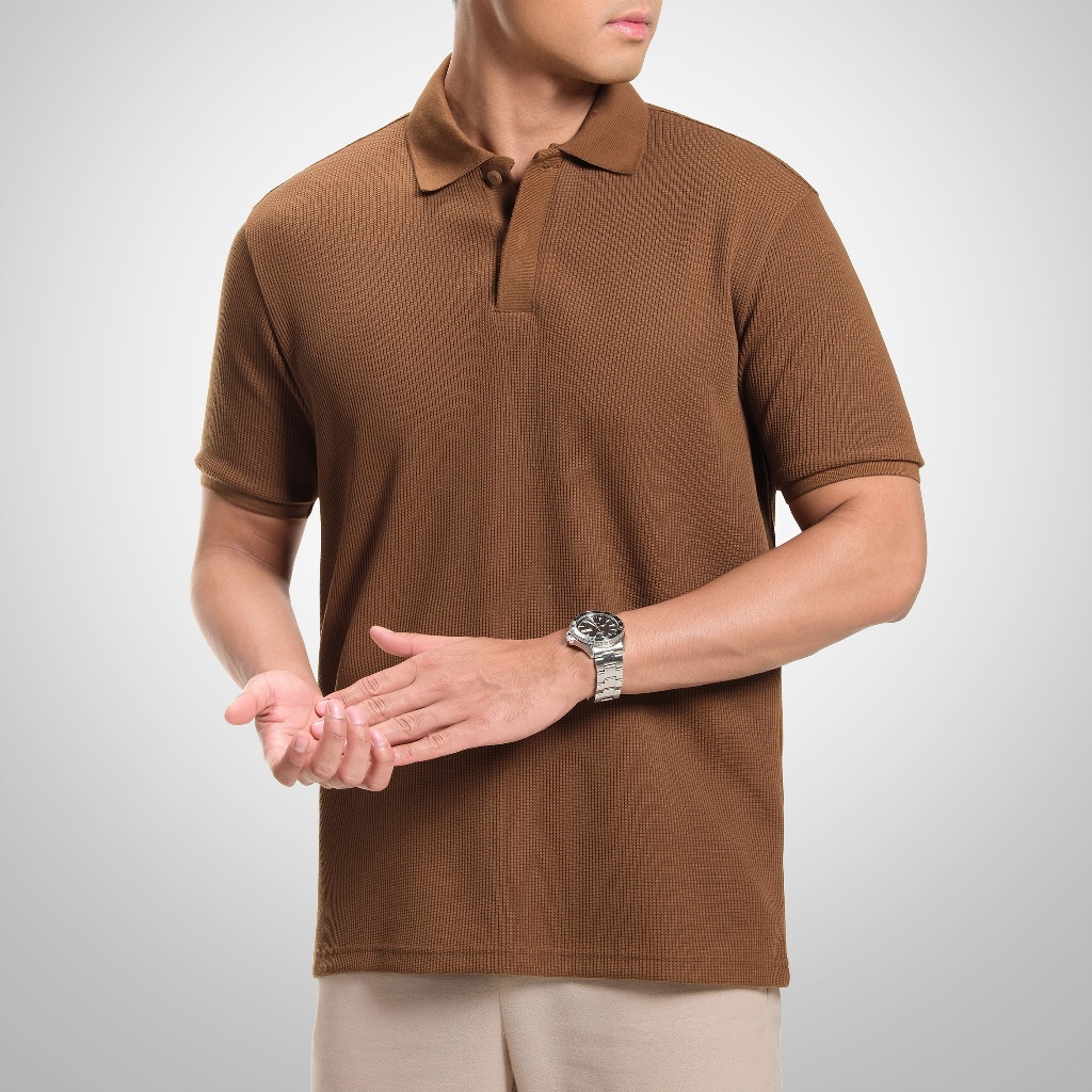 Cutoff Ezra Waffle Knit Polo Shirt Baju Kaos Textured Berkerah Lengan Pendek Pria