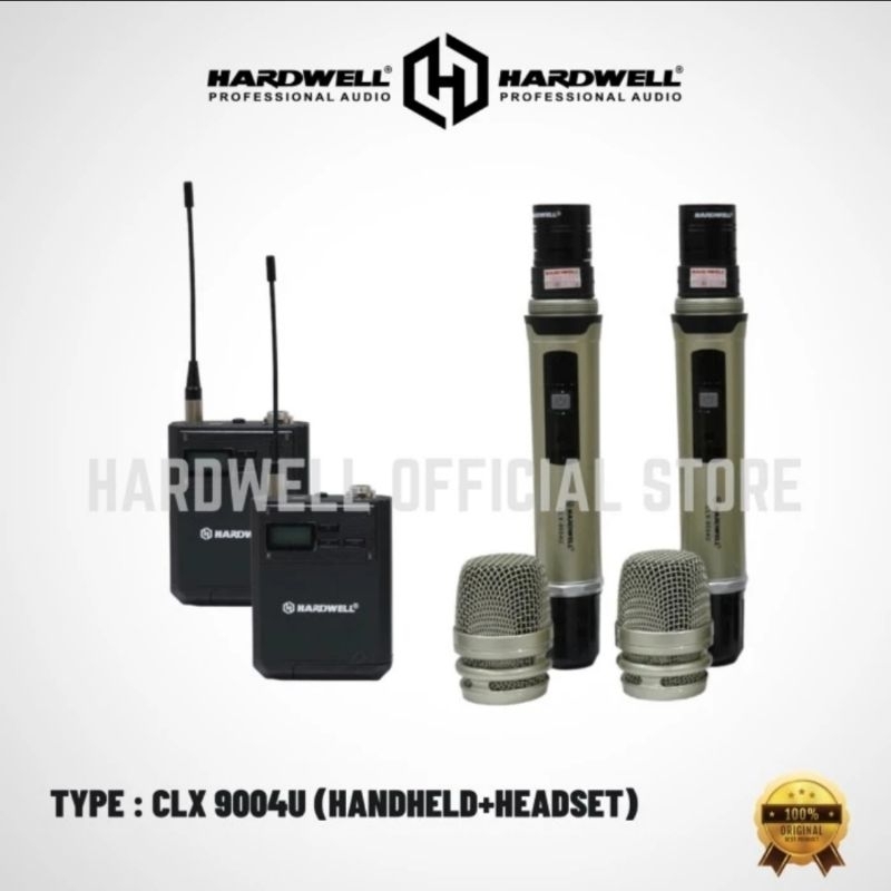 Mic Wireless Hardwell CLX 9004U 2 Mic Handle & 2 Mic Clip on Headset [ Free Hardcase ]