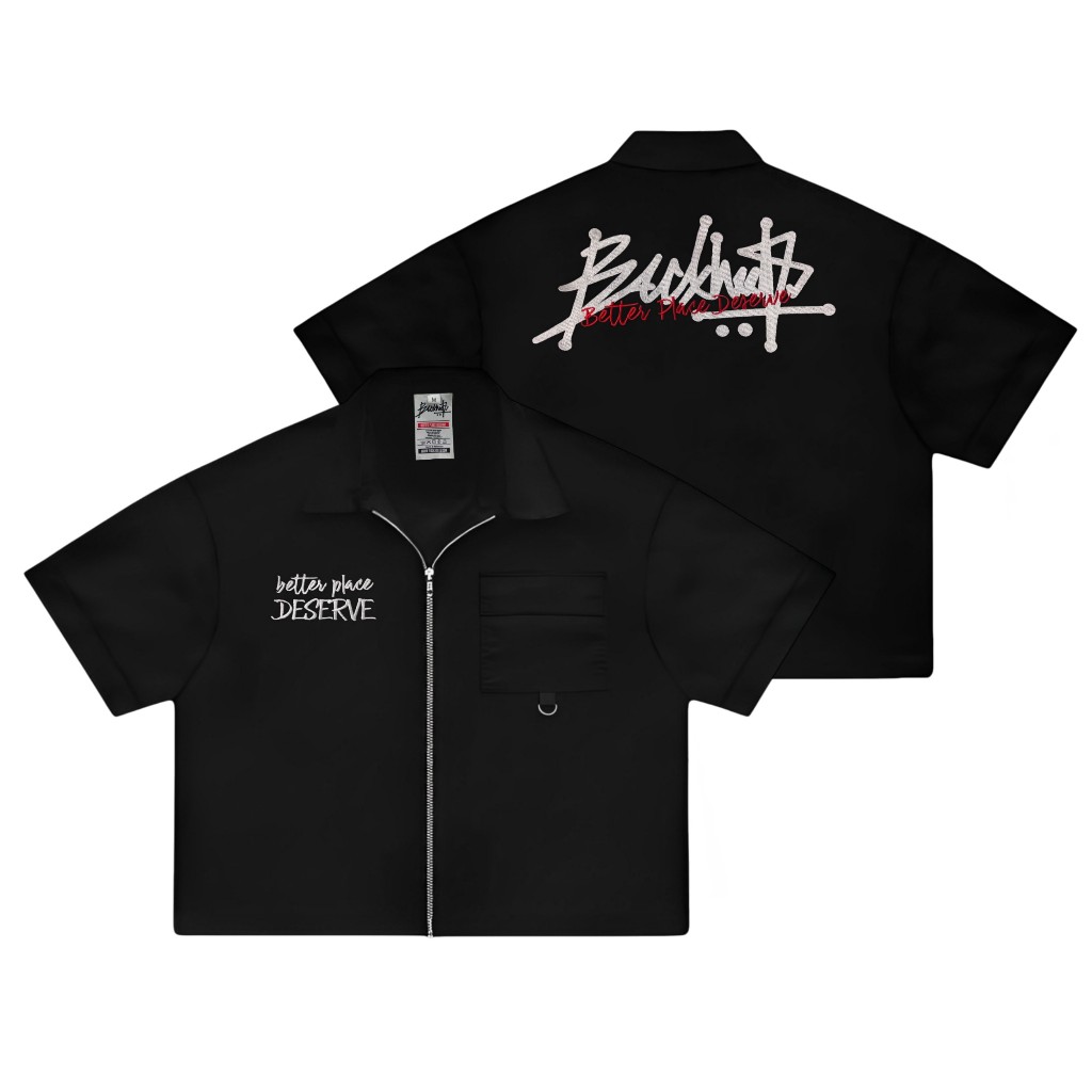 Backheels - Workshirt Zipper Boxy - Deserve - Kemeja Kerja Hitam Unisex