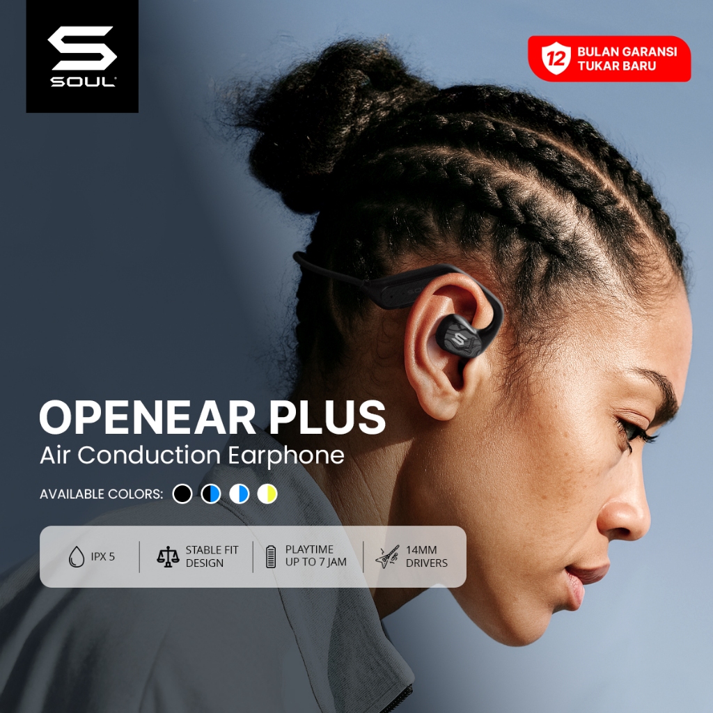 SOUL Open Ear Plus Air Conduction Earphone IPX5 Lightweight Sport Headset Bluetooth Anti Keringat