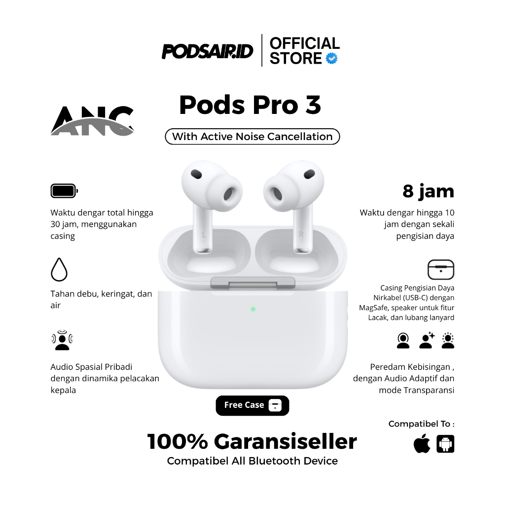 Pods Air Gen Pro 3 ANC Wireless Bluetooth Earphone TWS Mini Earbuds Headphone With Pop Up Animation