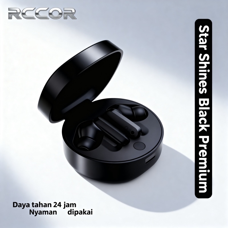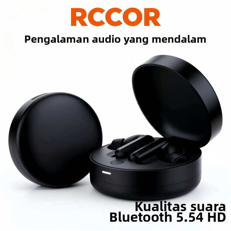 RCCOR Earphone TWS Bluetooth 5.4 Kualitas Premium - Bentuk Bulat Nyaman, Daya Tahan Lama, Fitur CVC & Audio 360° Immersi