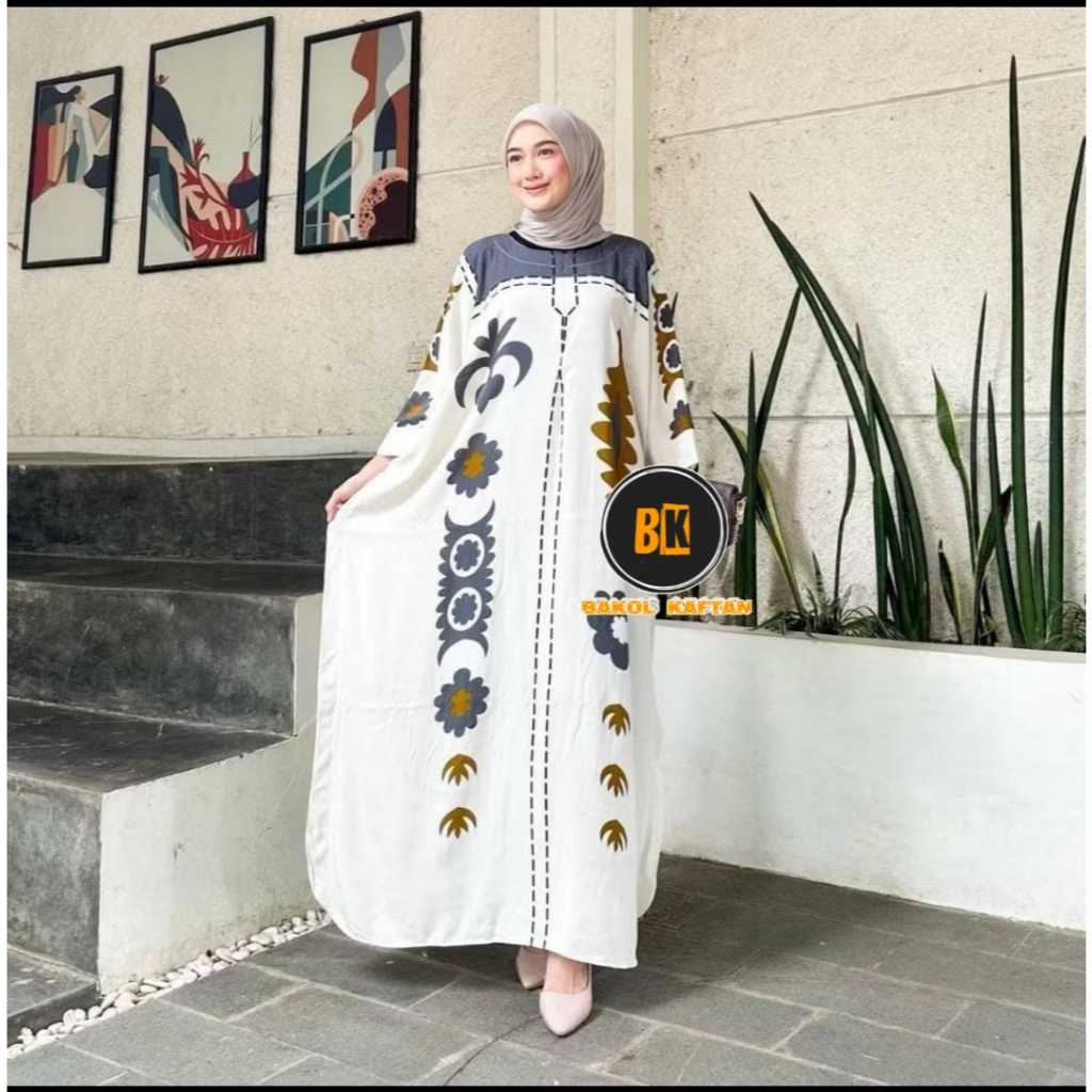Baju Gamis Kaftan Jumbo LD 180cm Busui Friendly Motif Monalisa Rayon Premium