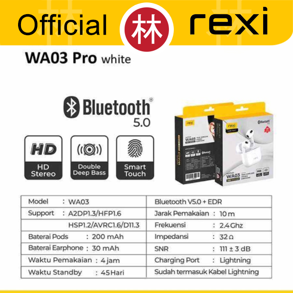 Rexi WA03 Pro Edition Double Deep Bass Music TWS Earphone BT 5.0