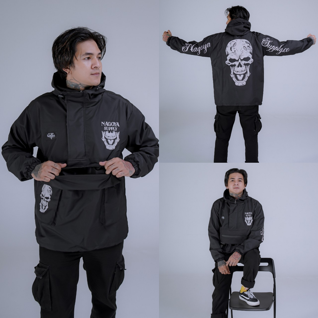 Jaket Pria Distro Parasut Waterproof Original Hitam Motif Anti Air Keren Jacket Cagoule Jaket Pria Wanita Terbaru