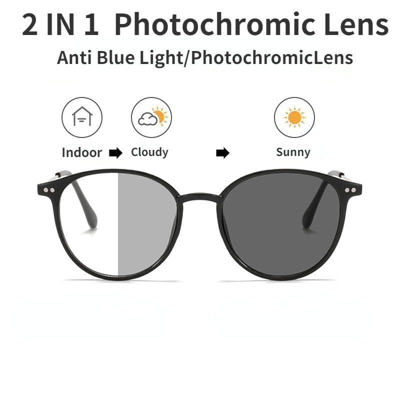 GRATIS BOX Kacamata Minus -1 -2 -3 -4 Pochromic Anti Radiasi Kacamata Baca Bentuk Bulat Metal Gaya Korea Untuk Pria Wanita
