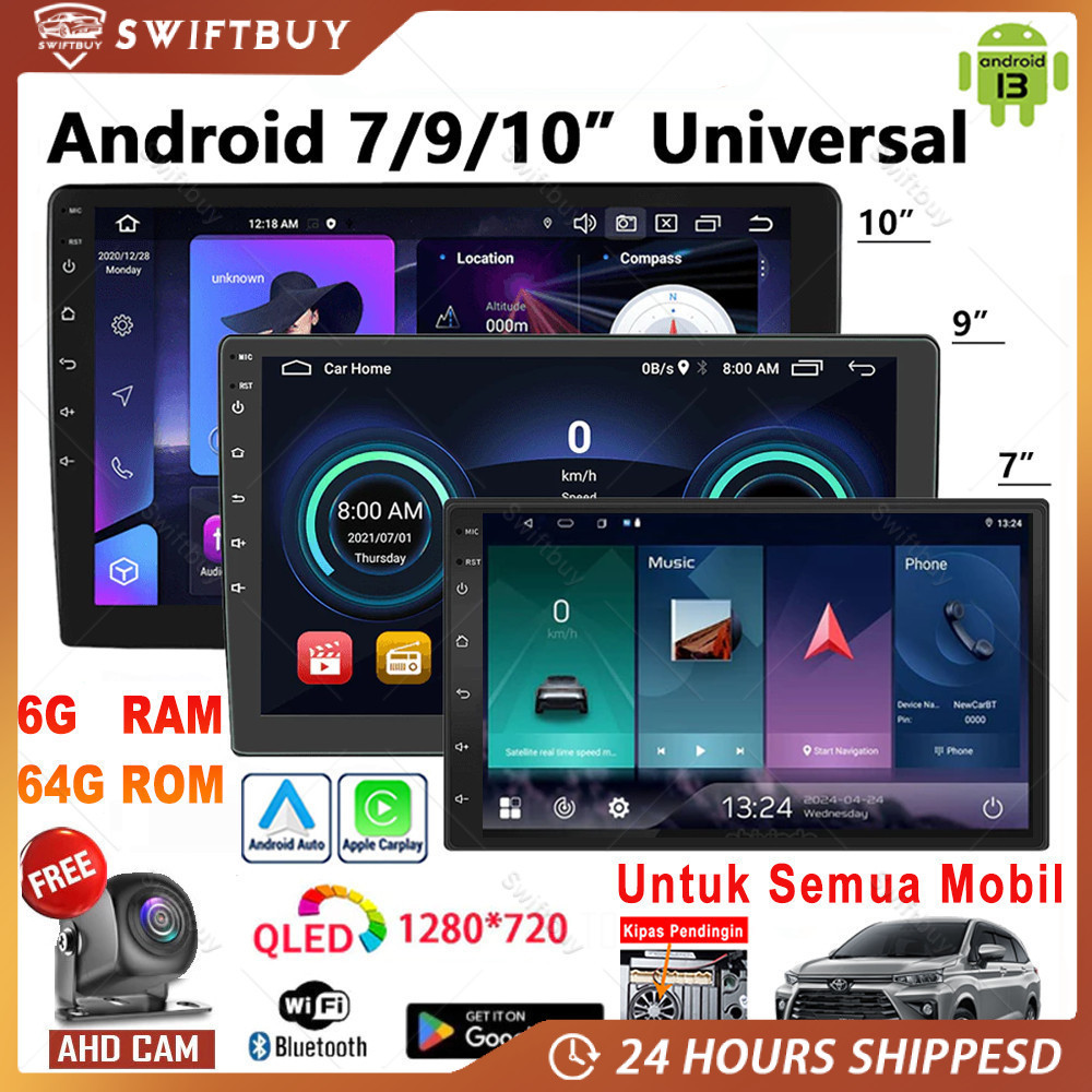 [Ada Kipas Pendingin] LALAHOO 6G+64G Android 13 Head Unit 7/9/10 Inch IPS Layer Mobil Navii Untuk TOYOTA Daihatsu Mit