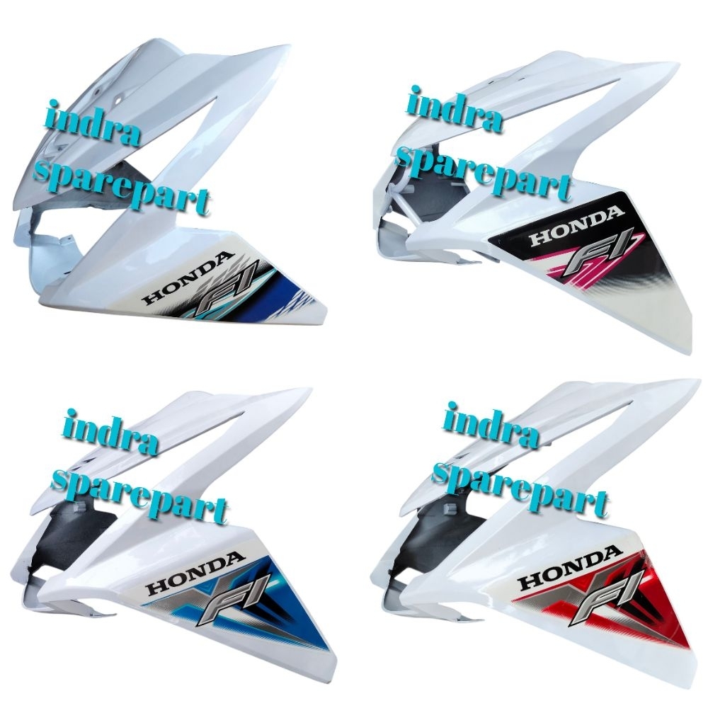 Cover Front Tameng Panel Dasi Body Lampu Depan Honda Beat Fi K25 Tahun 2012 2013 2014 2015 Warna Putih Plus Stiker Striping