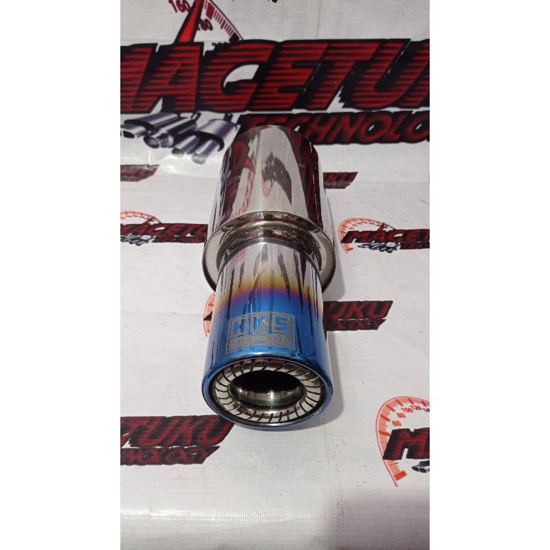 Knalpot Racing Mobil HKS Sedet Full Stainles Bass Empuk Adem Bulat Biru