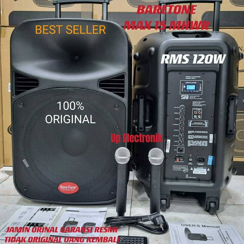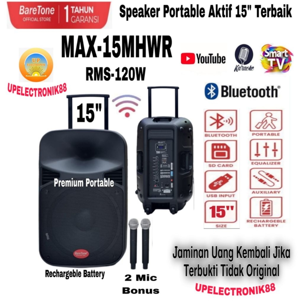 Speaker Aktif Portable 15 Inch Baretone MAX15MHWR Rms 120Watt Usb Bluetooth Original