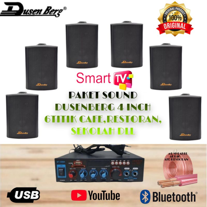 PAKET SOUND SPEAKER 6 TITIK 4 INCH DUSENBERG BUAT CAFE,RESTORAN,KANTOR, SUPPORT BLUETOOTH