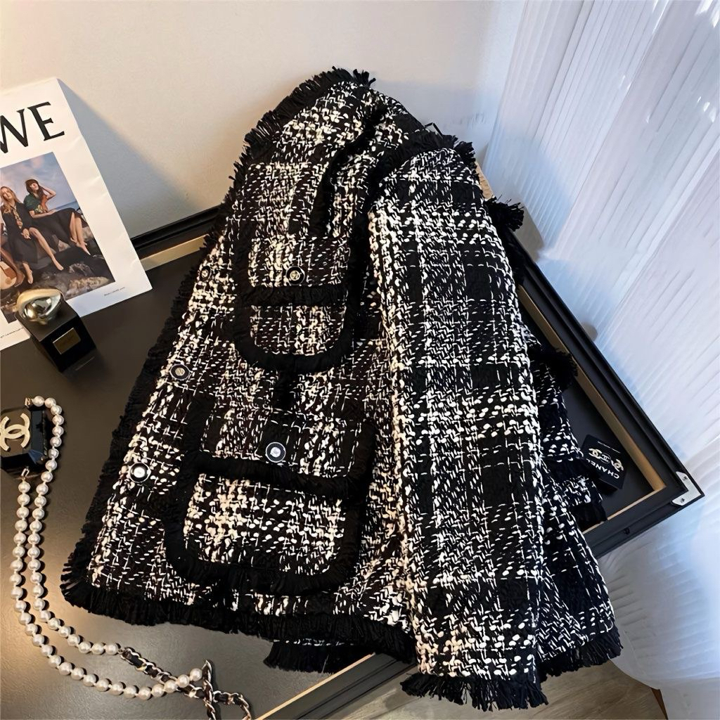 The0ne_ BLAZER JUMBO TEBAL || V-Neck Blazer Tweed Black-White Plaid Raw With Big ckets