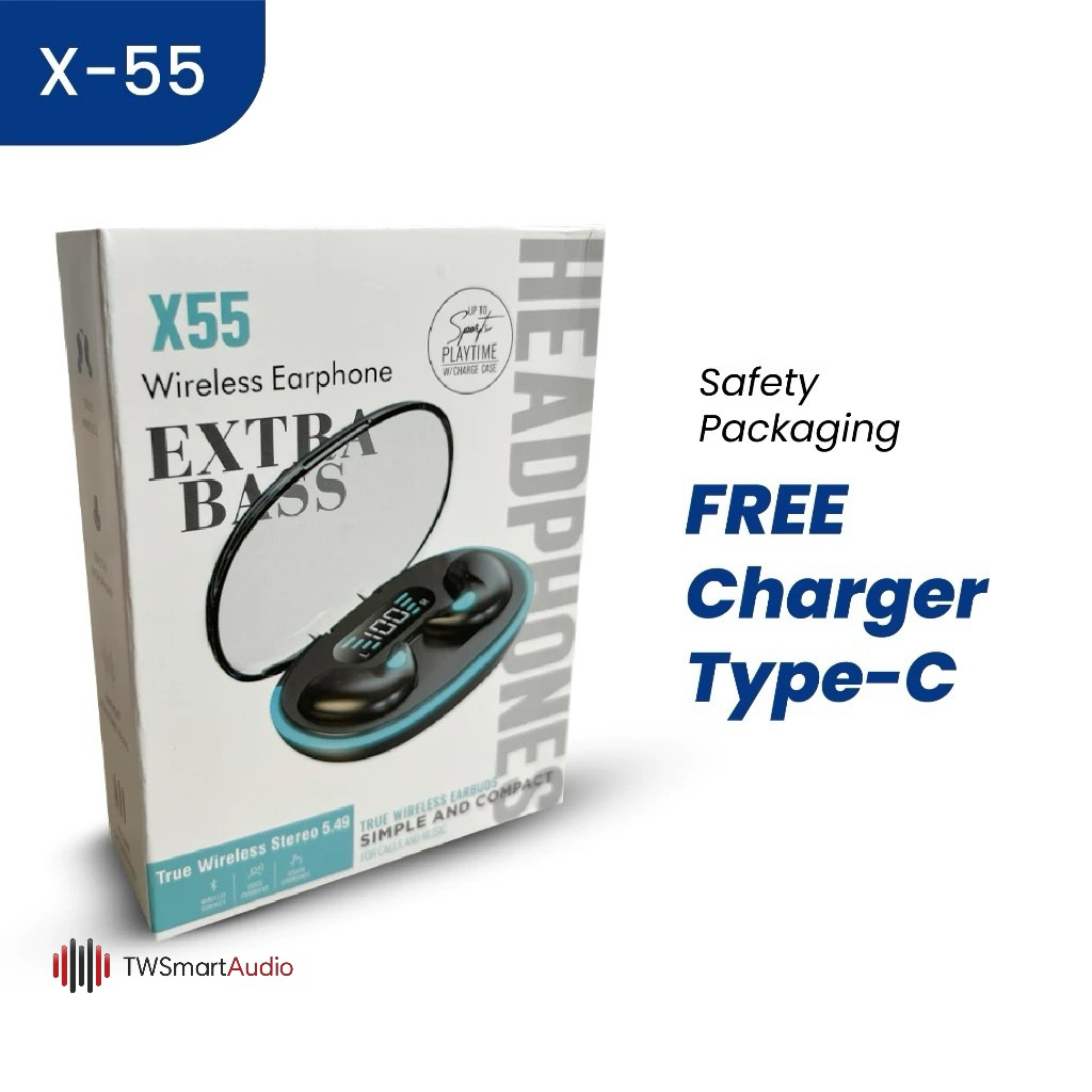 [ X-55 ] TWS Wireless Bluetooth X-55 Extra Bass True Wireless Stereo 5.49 simple and compact