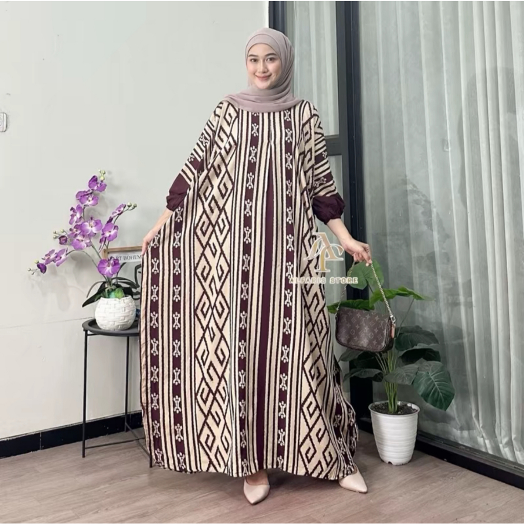 RUZZA Kaftan Motif Pita Pitaloka Fatma Jumbo LD 140 cm Bahan Rayon Premium Adem Nyaman Busui