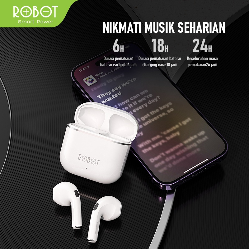 ROBOT Headset Bluetooth TWS Earbuds Chip 5.3 Semi In-Ear Bass Extra Deep, Tahan Air, Smart Touch Control, Suara Jernih S