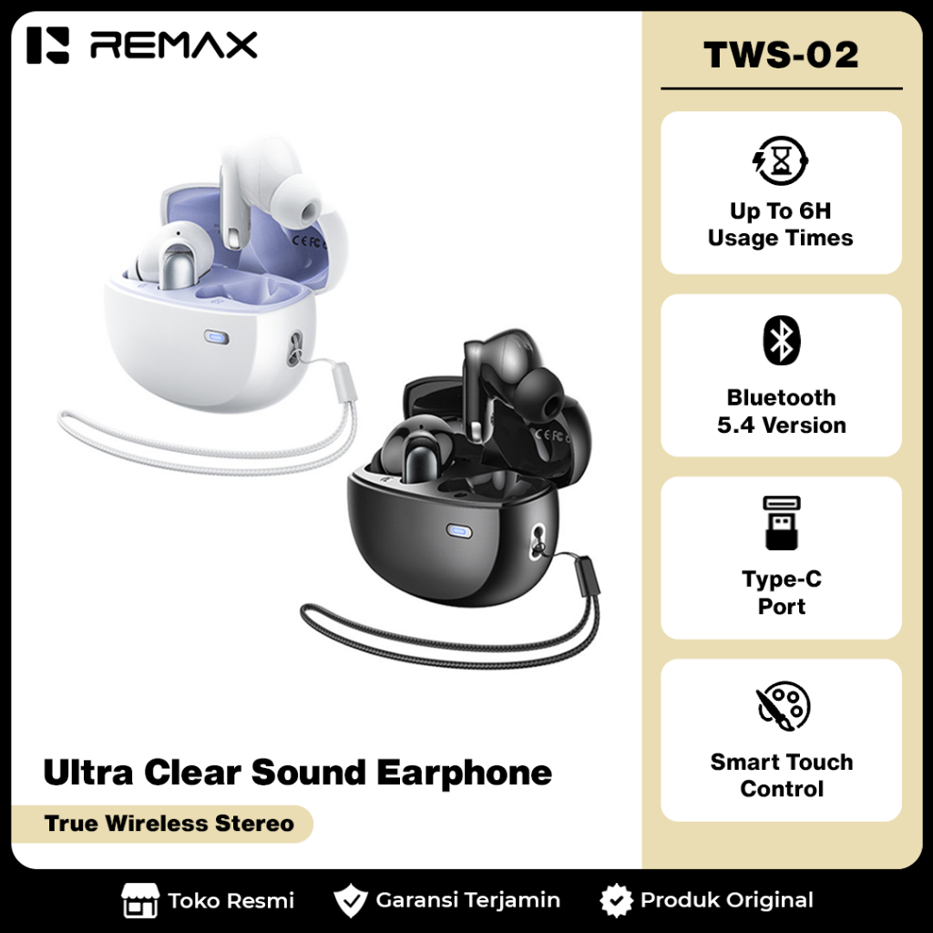 Remax Bluetooth Earphone 5,4V Music&Call Smart Touch Included Lanyard TWS-02