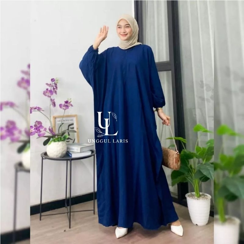 Kaftan Polos Bandung Lumajang Simple Rayon Premium Warna Hitam Sage Putih Dress Busui Tebal Bisa Vod