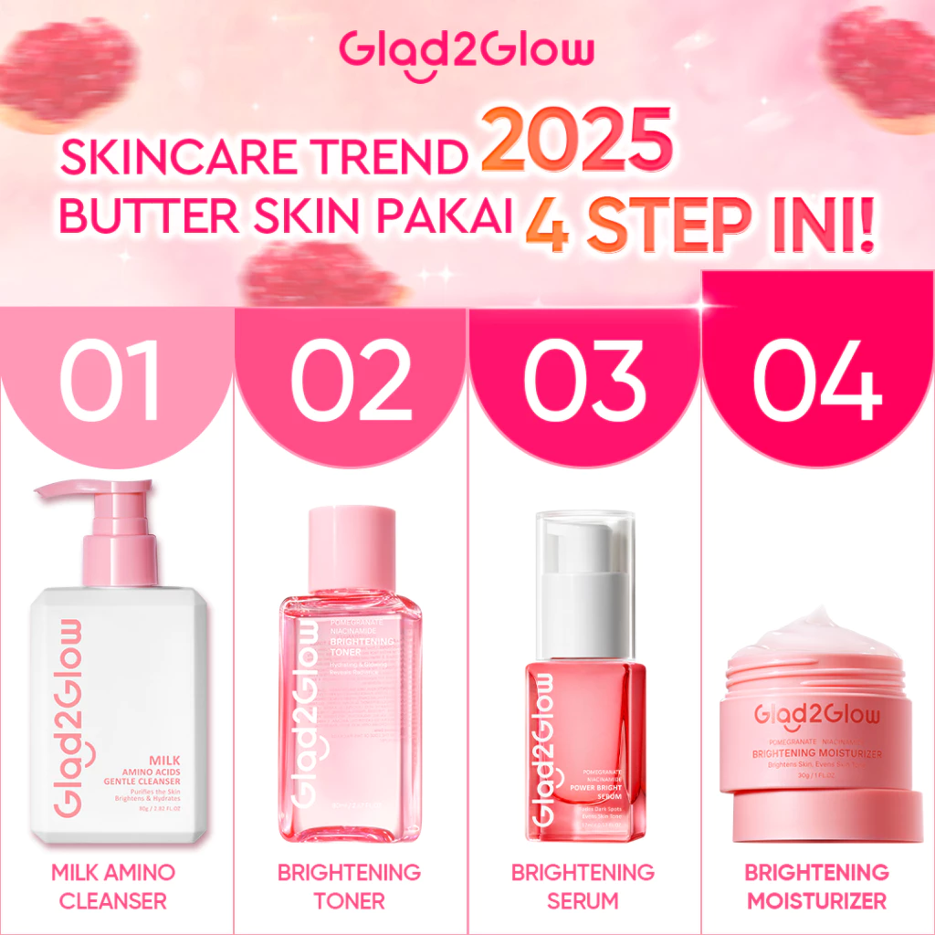 [ Paket Hemat Putih Wajah ]Glad2Glow Cerah Glowing 4PCS bundle all in1 - Skincare Paket-Brightening toner+Brightening