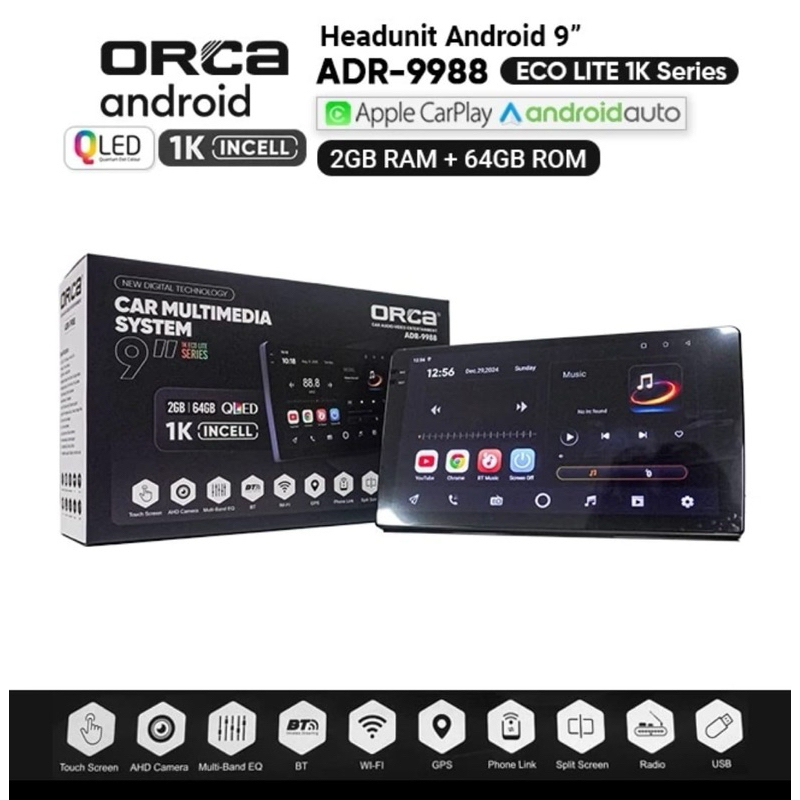Head Unit Android Orca Adr-9988 9” / 10” Inch Ram 2+64GB 1K Eco Lite Series QLED Carplay & Android Auto