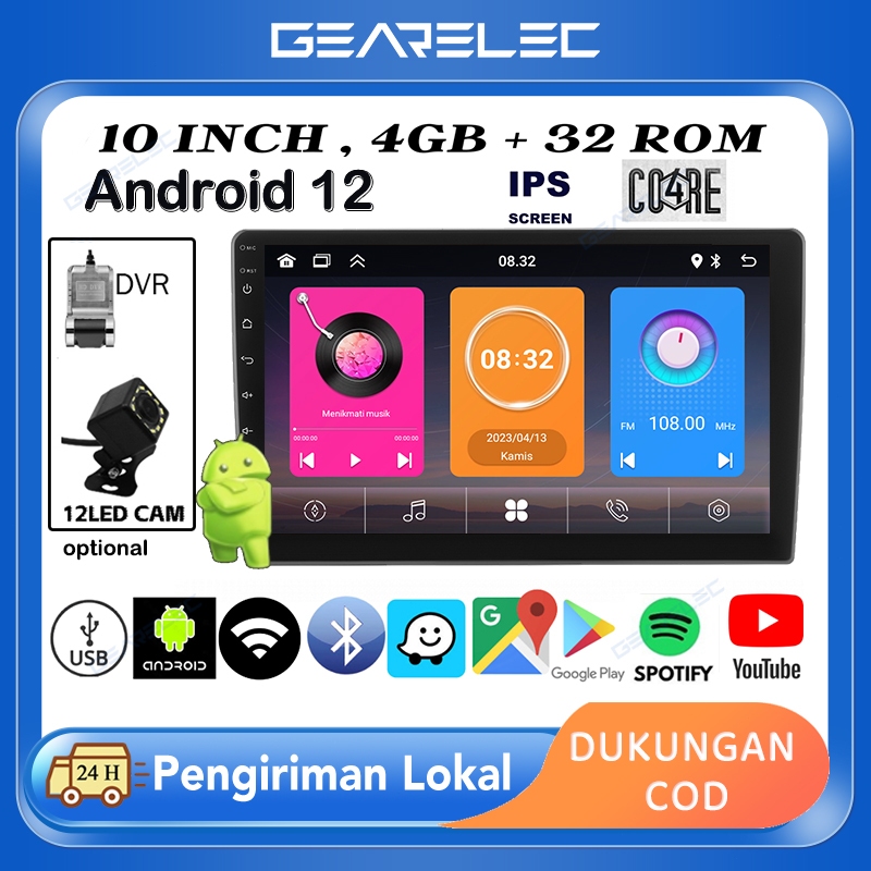 10 Inch Android 12 Radio Mobil RAM4GB ROM32GB Bluetooth WiFi GPS Youtube Untuk TOYOTA Daihatsu Mitsubishi HONDA SUZUKI H