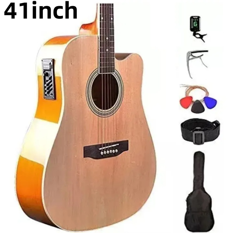 PLAYOU Low Action Gitar Akustik Elektrik 6 Senar Gitar Akustik Elektrik 41 inci Dengan Pickup 4EQ Dengan Tali Pengikat