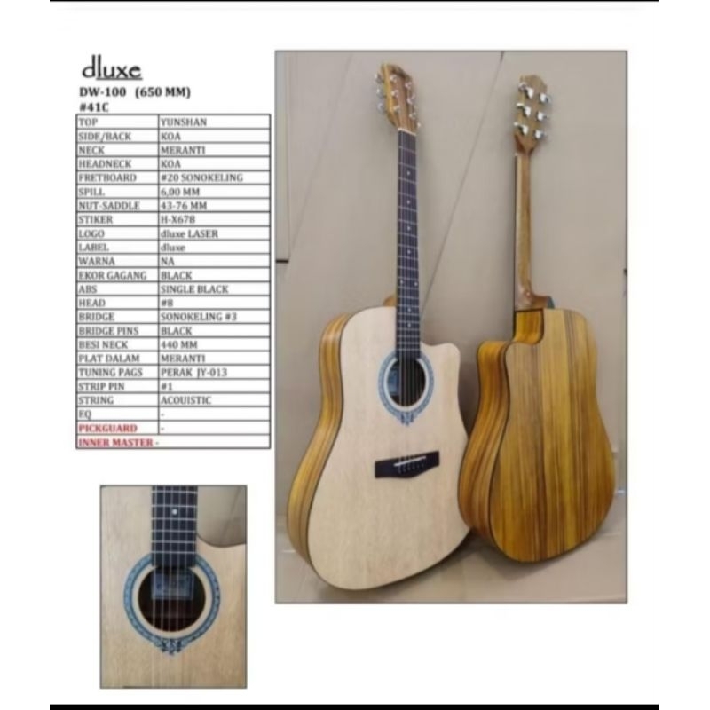 Gitar Akustik Deluxe DW 110 Gitar ACustic Original Pabrik bonus tas