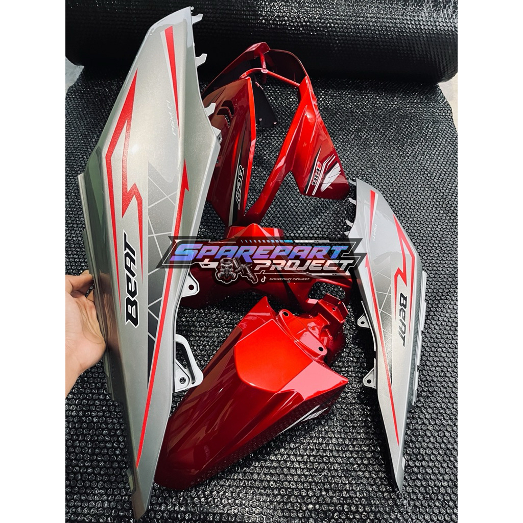 full set cover Body halus Honda Beat fi tahun 2013-2015 warna merah grey + Striping Vietnam style 🇻🇳
