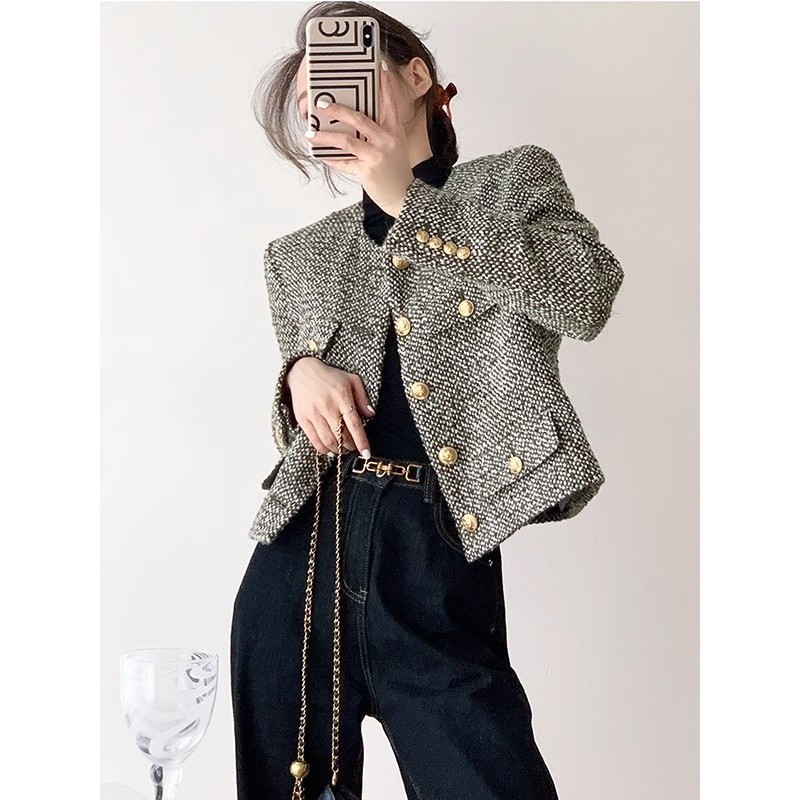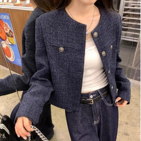 MISS EMITA er Crop Top Lengan Panjang Tweed Blazer Biru Wanita Premium Mewah er Kondangan Simple Elegan Jaket Wanita Korean Style 2025