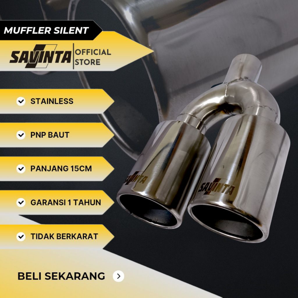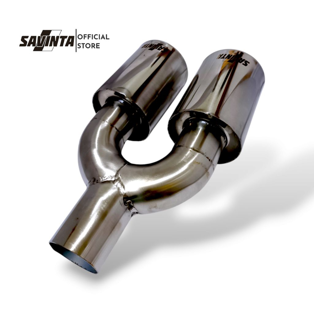 SAVINTA Knalpot Mobil Cabang 2 Full Stainless Muffler Silent Dobel Baut Universal Manual Matic
