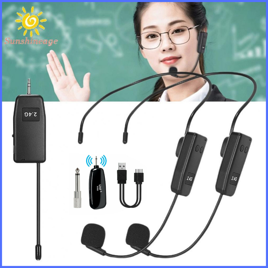 READY 2 PCS MIKROPON Microphone Bando wireles imam masjid mengajar konten youtuber 2.4GHz Headset