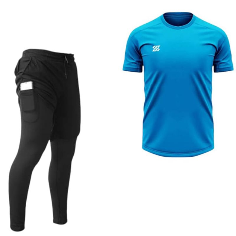 Stelan Baju Jersey Dan Celana Panjang 2in1 Badminton Gym Running Fitnes Voly