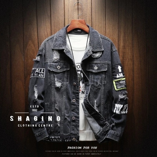 Shagino | Jaket Jeans Terbaru / Jaket Jeans Pria Dan Wanita / Jaket Jeans Pria Korean Style / Jaket Jeans Pria Sobek / J