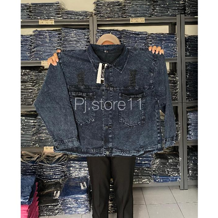 Jaket Jeans Ripped Jumbo Bigsize PRIA WANITA/Jaket Jeans Snow Oversize Unisex [ld120,130,140]