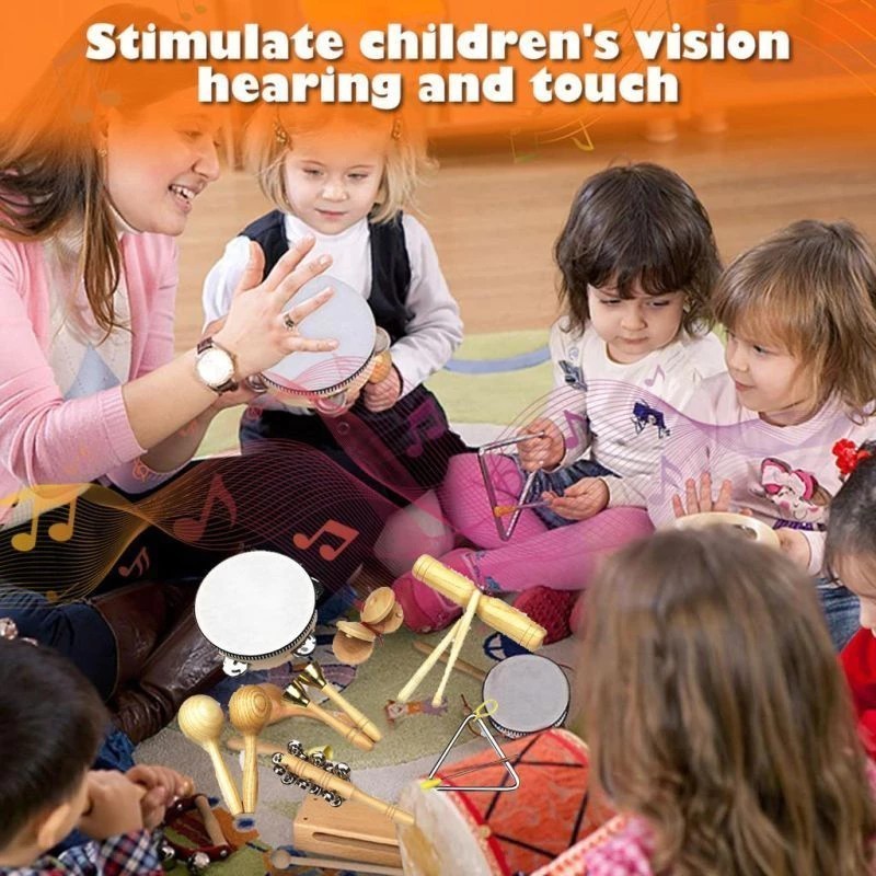 7pcs Alat Musik Drum Anak Alat Musik Tambourine Alat Musik Maracas Mainan Alat Musik Perkusi Hand Percussion Musical Ins