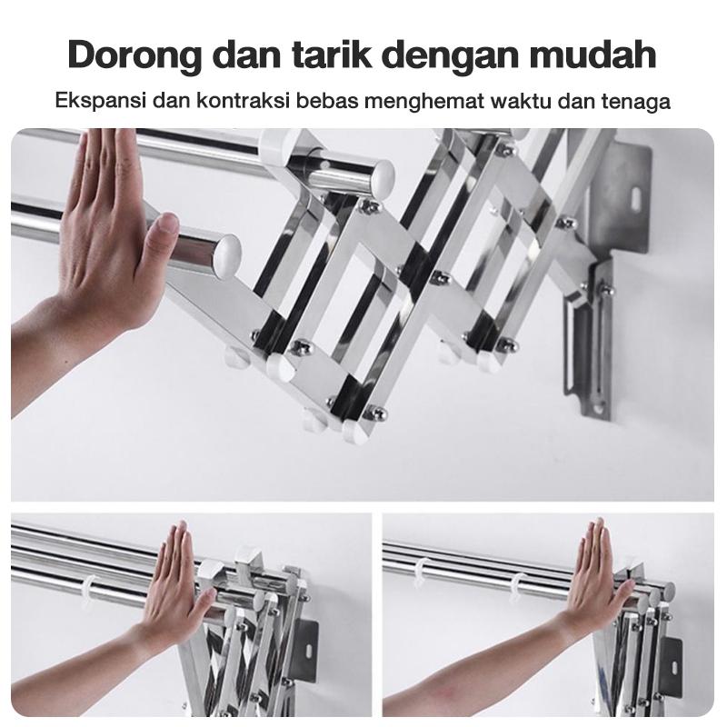 MRASIA Jemuran Dinding 200CM Lipat Stainless Steel Jemuran Dinding Tembok Minimalis Multilayer Kuat Tahan Karat & Ikatan