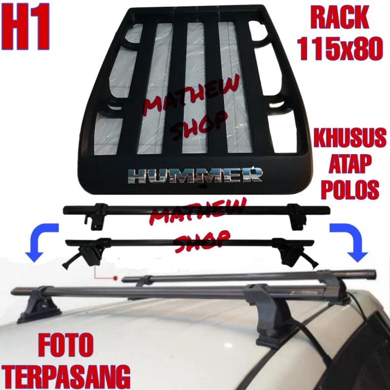 Paket Roofrack Rak Atap Mobil Hummer + 2Pc Crossbar Cross Bar Kaki Rack Jepit Body Dyson
