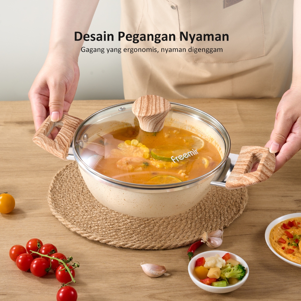 freemir Wajan Panci Granite Beige Series 20cm Anti Lengket Foodgrade Serbaguna