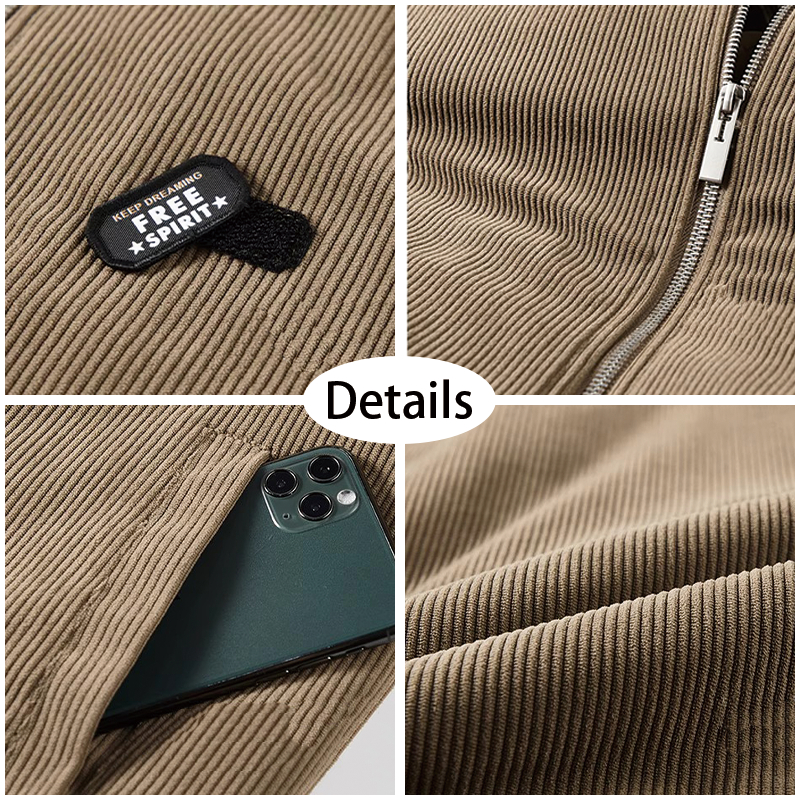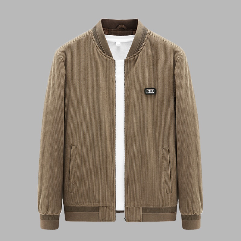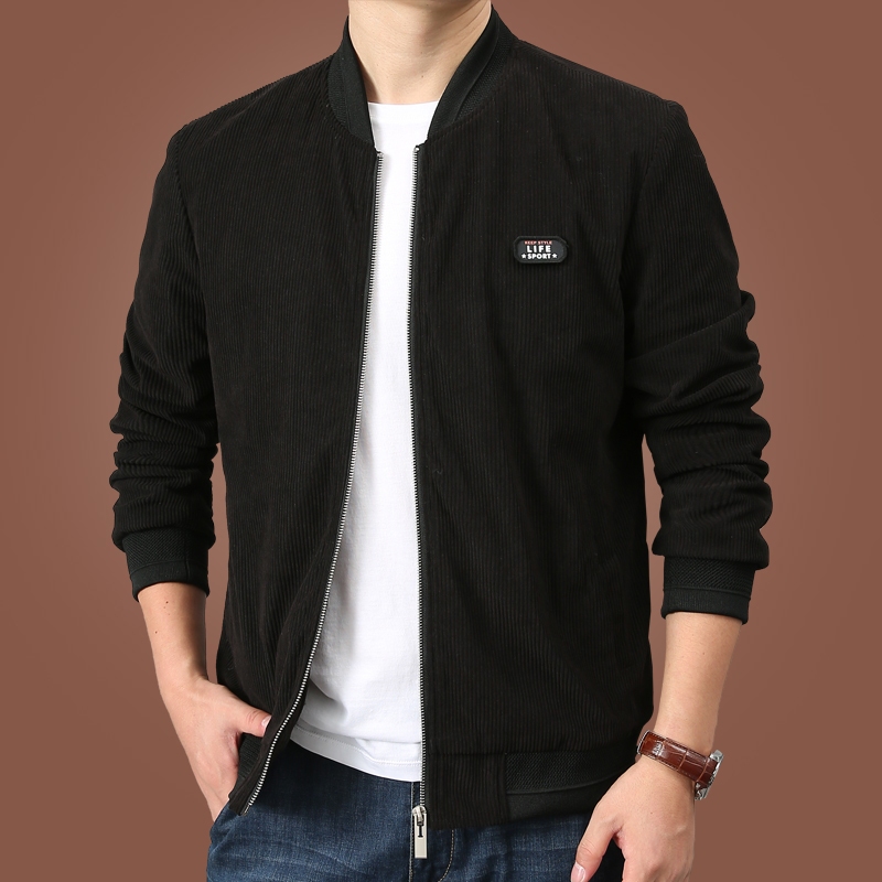 Jaket pria cokelat bahan corduroy Korean style casual fashion dewasa cowok lengan panjang jackets
