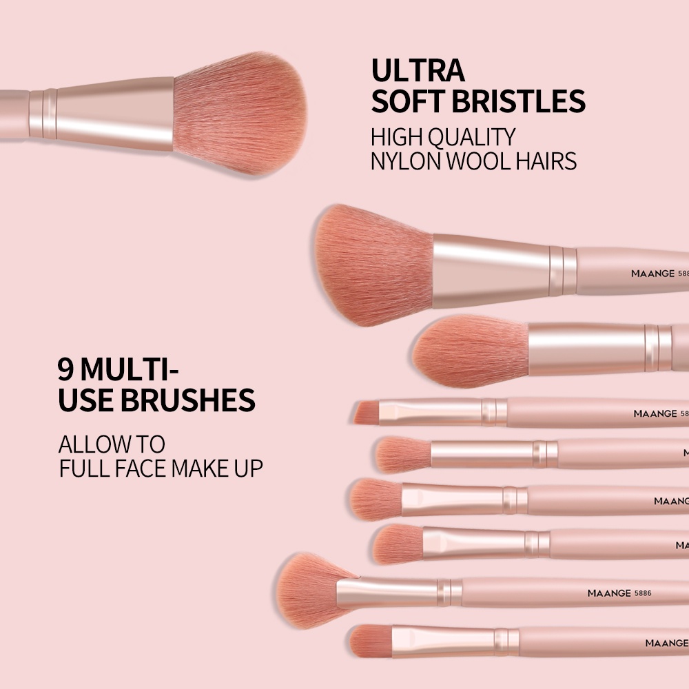 MAANGE 9Pcs Set Brush Makeup Kuas Eyeshadow Brush Kit Rambut Lembut Fluffy Alat Kecantikan Dengan Ember Kuas Organizer 52263